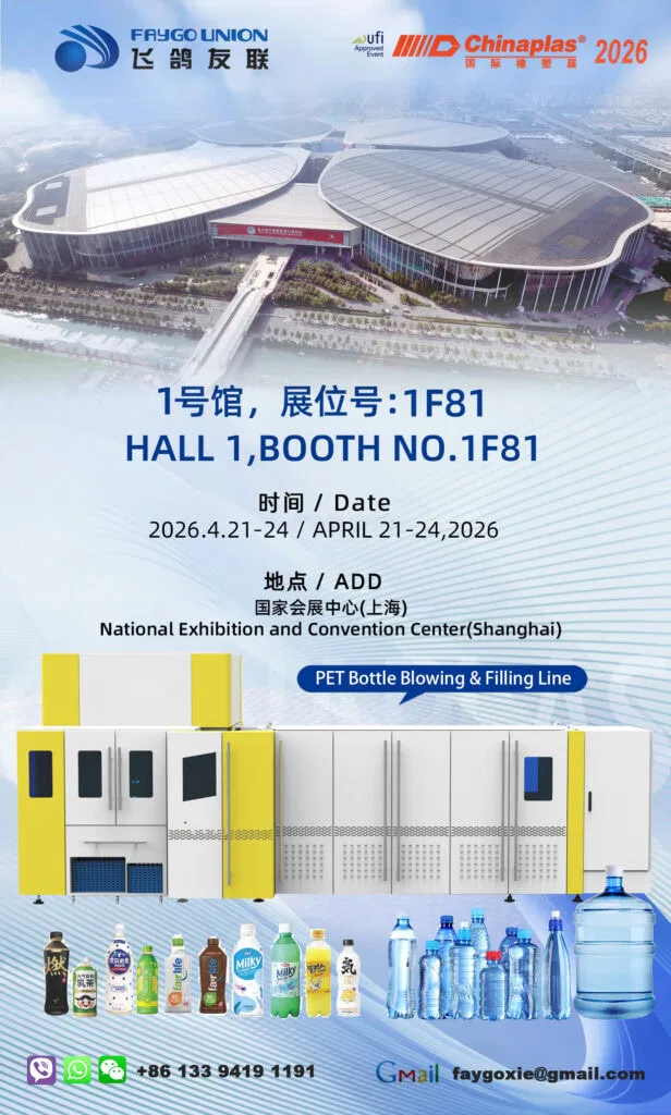 During this exhibition, Jiangsu Faygo Union Machinery Co., Ltd. will occupy two booth locations: an extrusion booth and a blow molding booth. We will be showcasing two key pieces of equipment: one SJ65 pipe extruder and one rotary blow-fill-cap system.