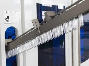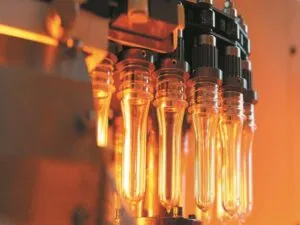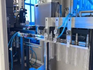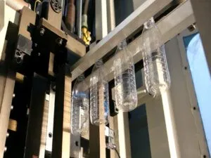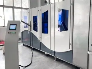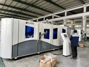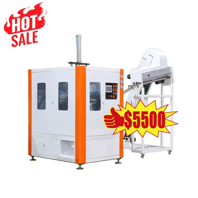 This is a latest small-output automatic bottle blowing machine which upgraded from a semi-automatic machine, it has a fully automated process of preform loading, heating, and bottle blowing, saving energy and labor.