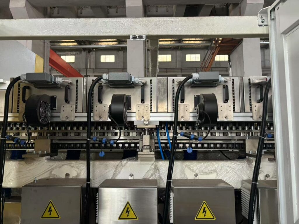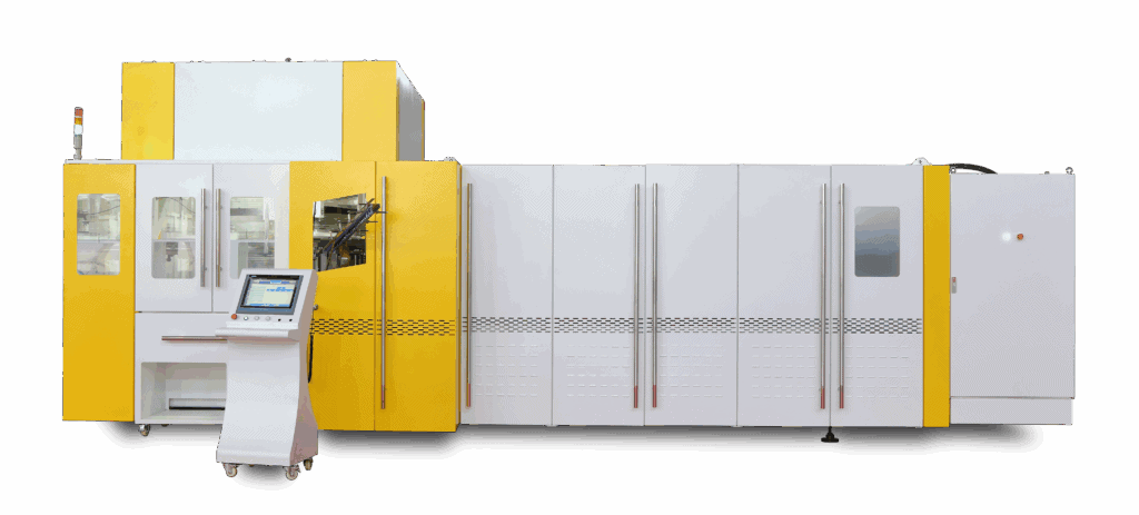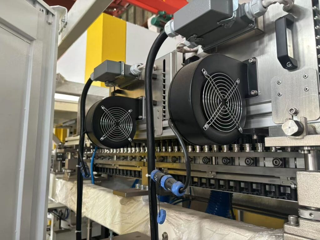 Adopting a 6-core 6-process high-pressure control valve, the innovative air circuit recovery system pressurizes the exhaust gas for pre-blowing, reducing the air consumption by 30%-40%; an Infrared heating furnace with ceramic plate energy storage technology, energy consumption is reduced by 10-20%; a water-cooled system optimizes heat management, further energy saving.